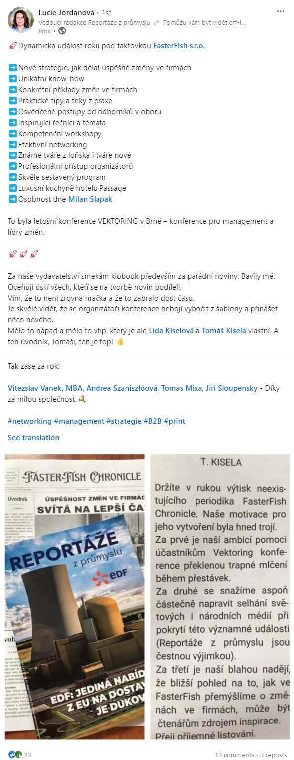 Nejvýraznější česká událost o dosahování změn ve firmách.